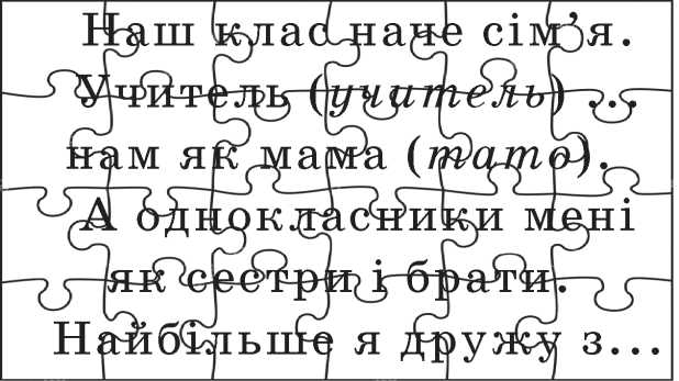 Завдання: зібрати пазл, прочитати текст, доповнивши його. Ім'я найкращого друга учні називають одне одному по черзі.