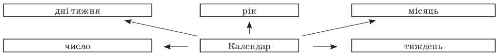 — Що ви знаєте про календар? (На ньому зазначено рік, назви днів тижня, числа.)