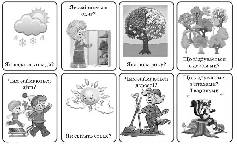 · Алгоритм складання розповіді «Пори року» (за мнемотаблицею).