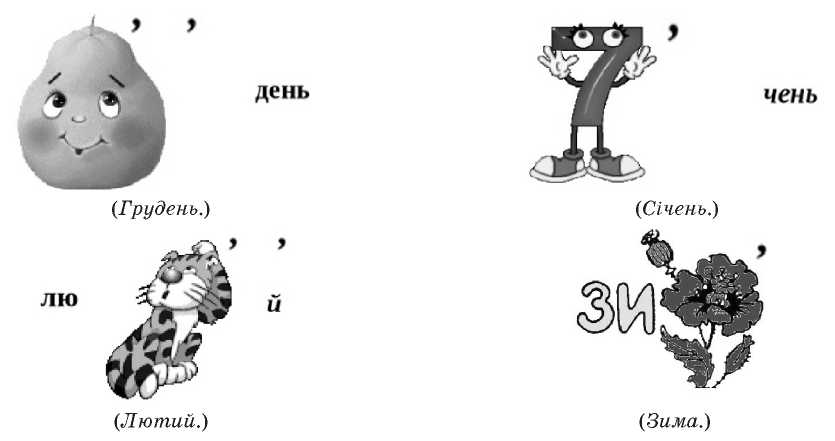 — Назвіть зимові місяці. Дослідіть, як утворились їхні назви.