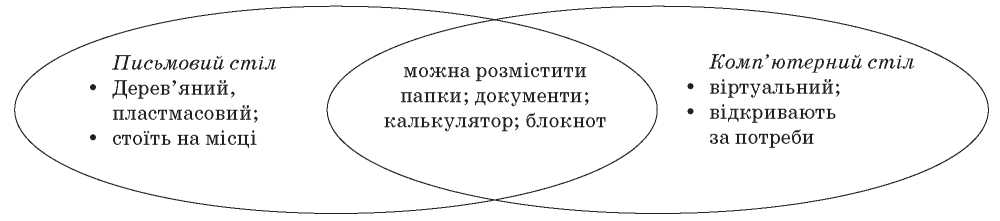 — Чим схожі та чим відрізняються звичайний письмовий стіл і робочий стіл комп'ютера?