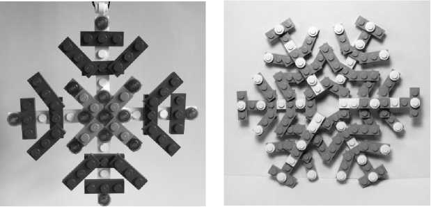 Пофантазуйте та створіть святкові різнокольорові сніжинки з цеглинок LEGO.